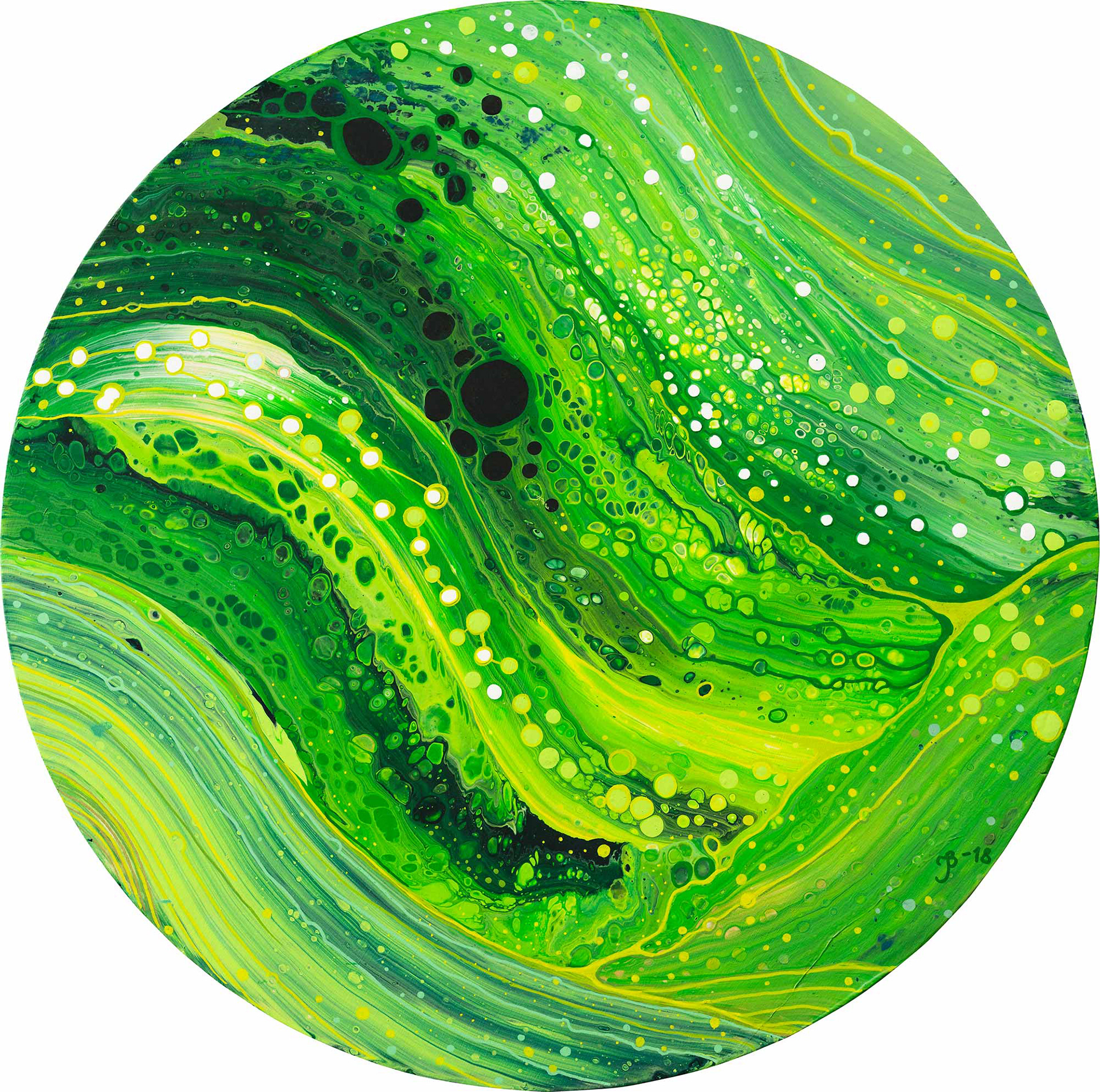 ALTAIS, 2018. Acrylics and spray colours on wooden board, 60 cm radius.