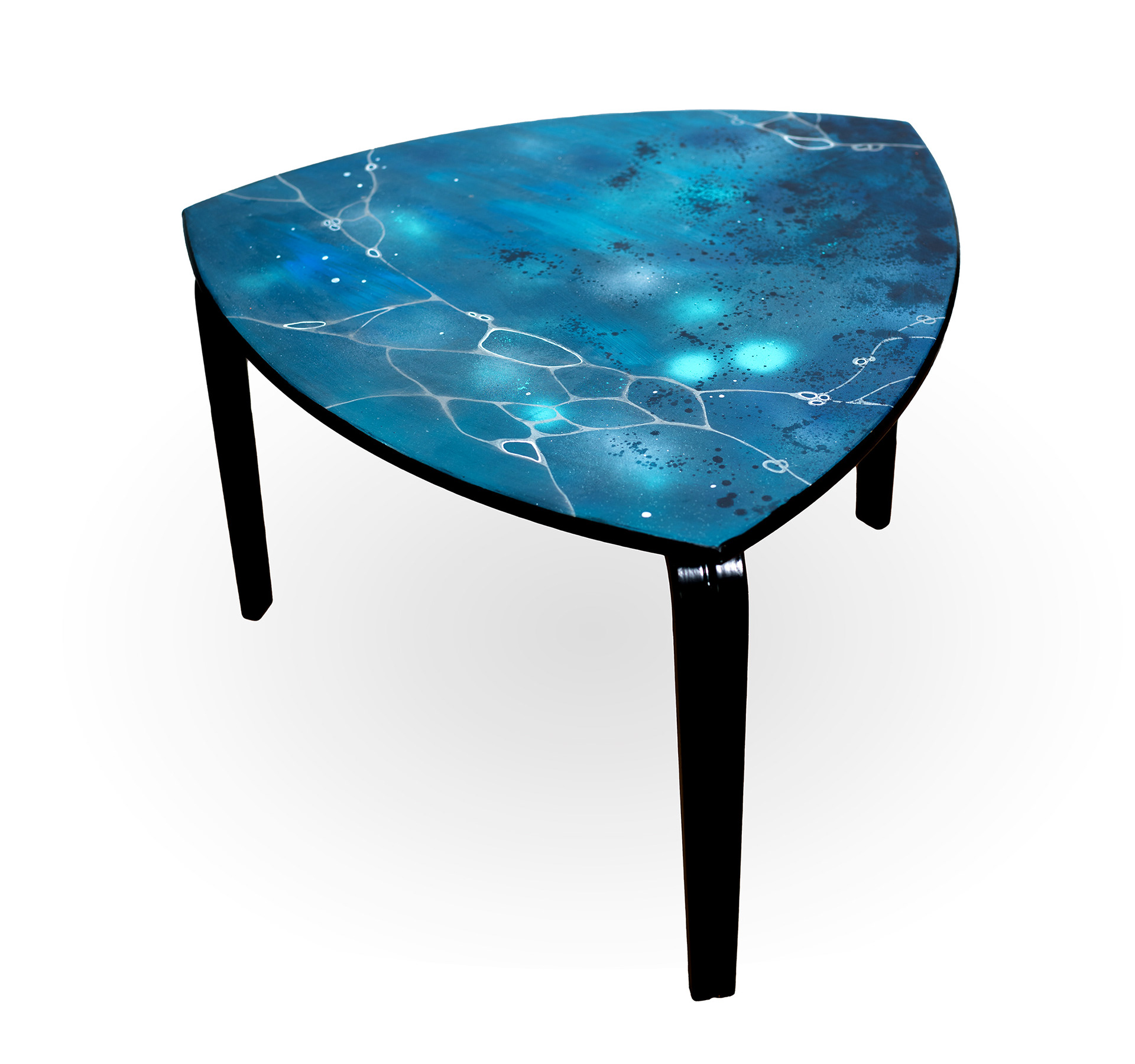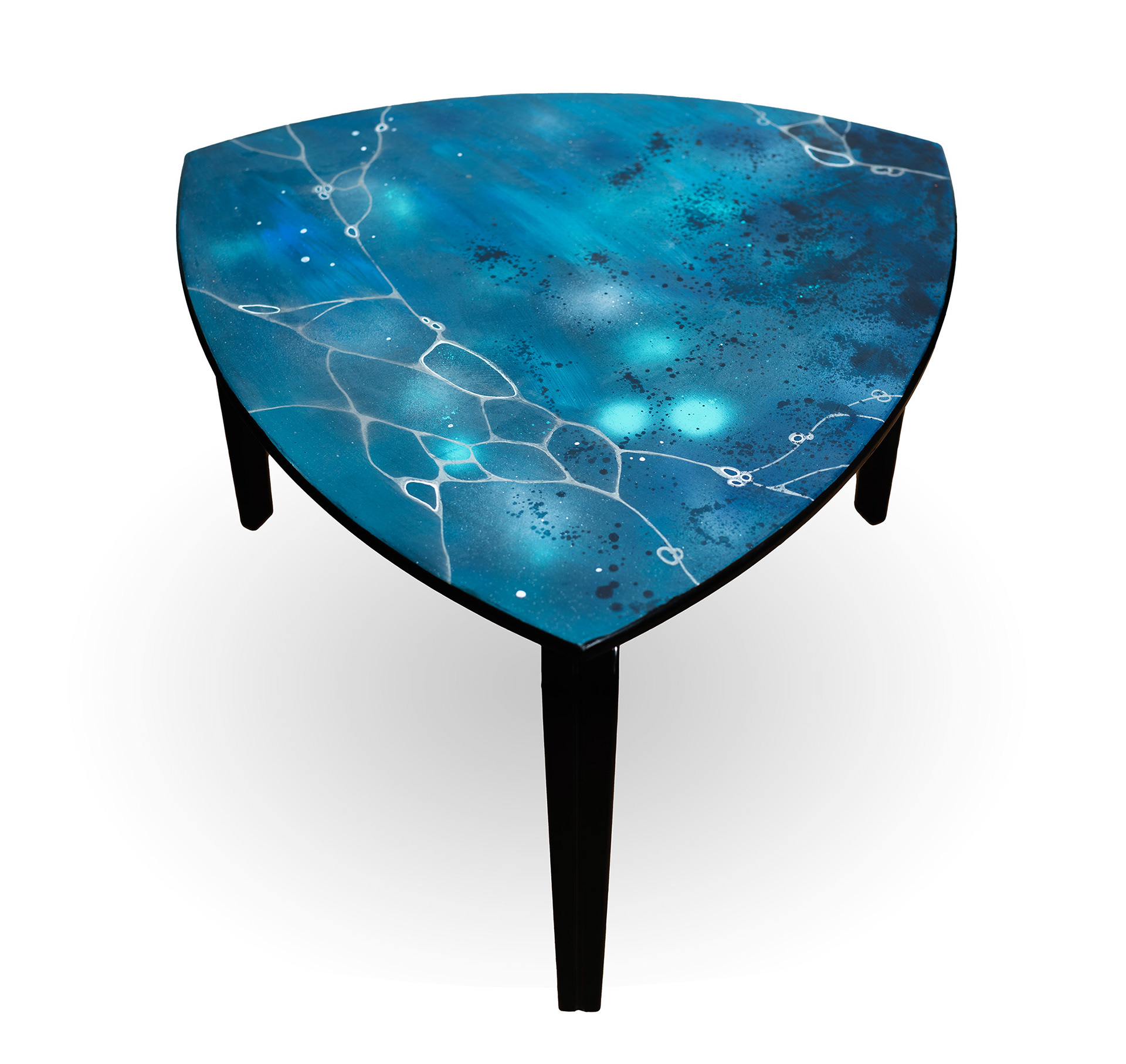 INDUS table, 2019. Recycled table painted with acrylics and spray colours.
